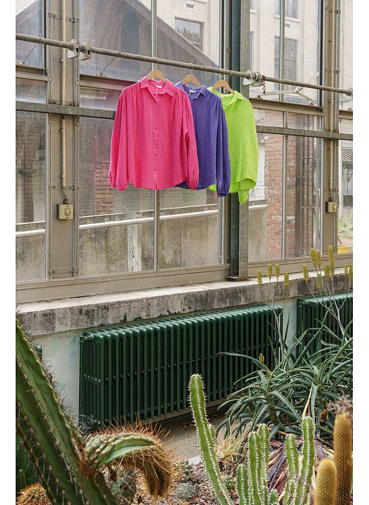 Airy oversized blouse with long sleeves. Pair the blouse with a cute jeans and sneakers for a relaxed look, add some heels for a casual dinner date in the evening.