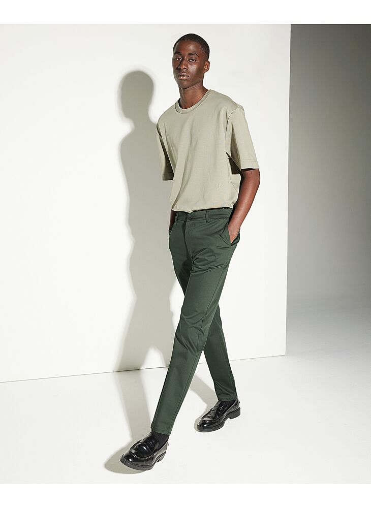 Crimson is our classic chino pants made in a comfortable and stretchy Cotton Tencel fabric. It has a slim fit with a regular waist, tapered leg and slightly dropped crotch. Crimson has a dressy, sophisticated feel made perfect for a timeless look. The model is 185 cm tall and wearing a size 32.