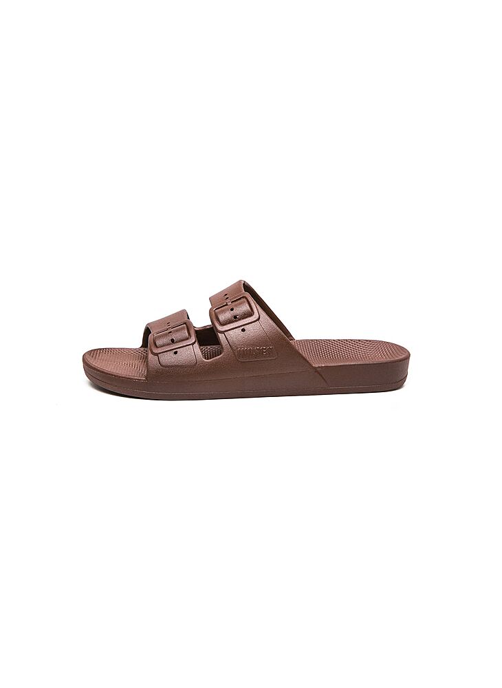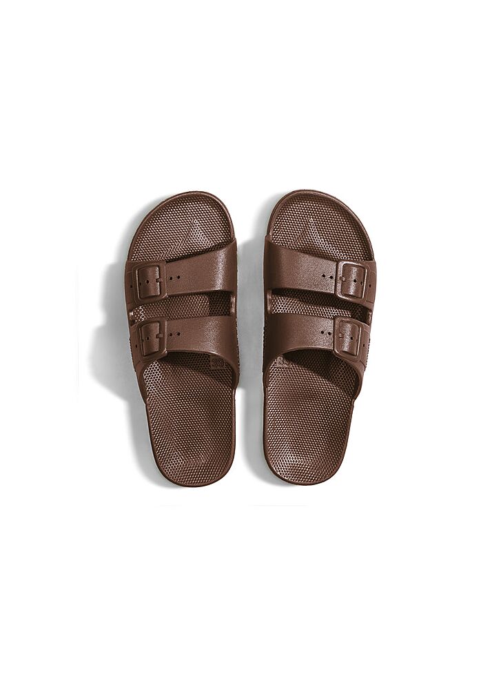 At Freedom Moses we're all about celebrating summer 365 days a year. From am to pm, our CHOCO vegan slides are injected with air so you feel like you’re walking on a cloud. Whether chilling at the beach or just hanging out, we’re also available for your whole crew, from kids slides to women's slides and men’s slides, if you’re into prints, glitters, metallics or basic colors we’ve got you covered.