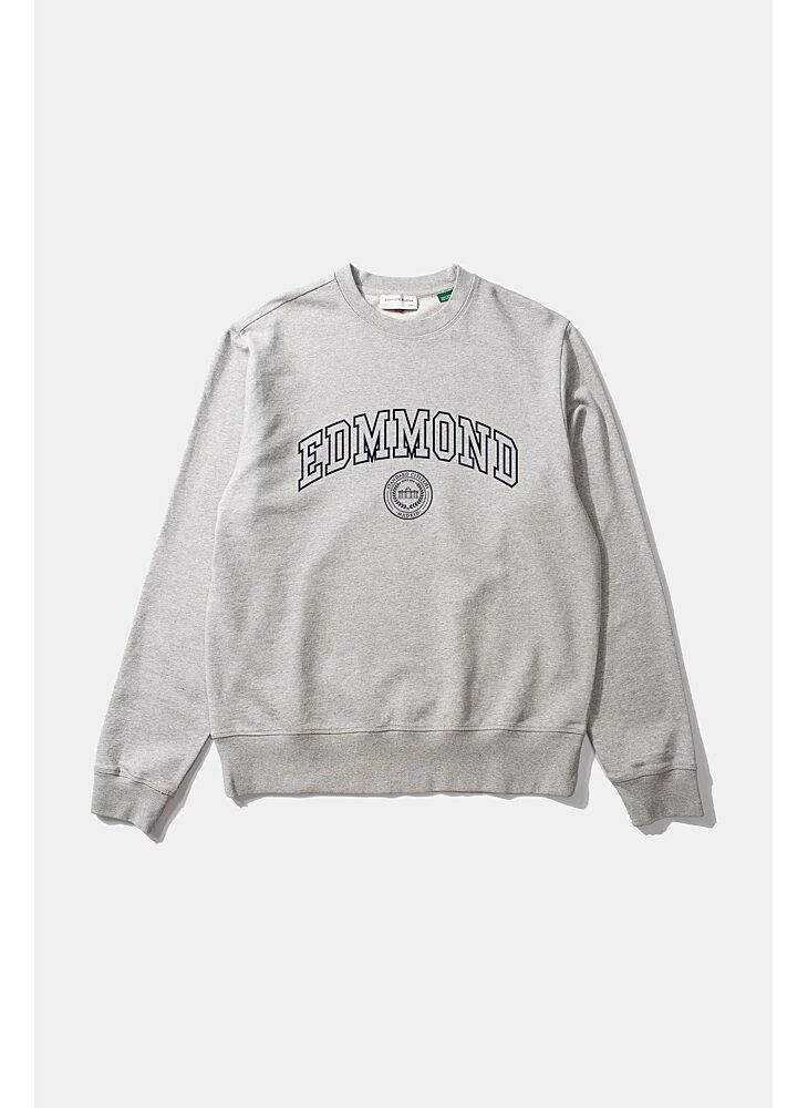 Round neck sweatshirt in a grey color. Made of 100% organic cotton. Featuring a ribbed collar, cuffs, and hem. Completed with an Edmmond on the front.