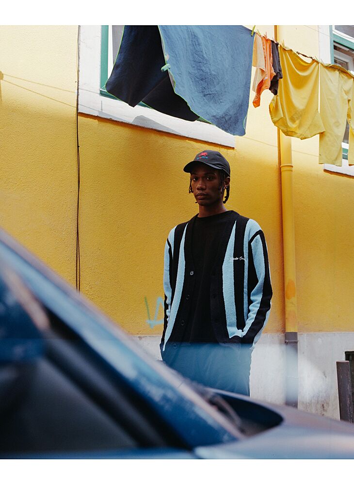 - Product: STRIPED CARDIGAN - BLACK/BLUE