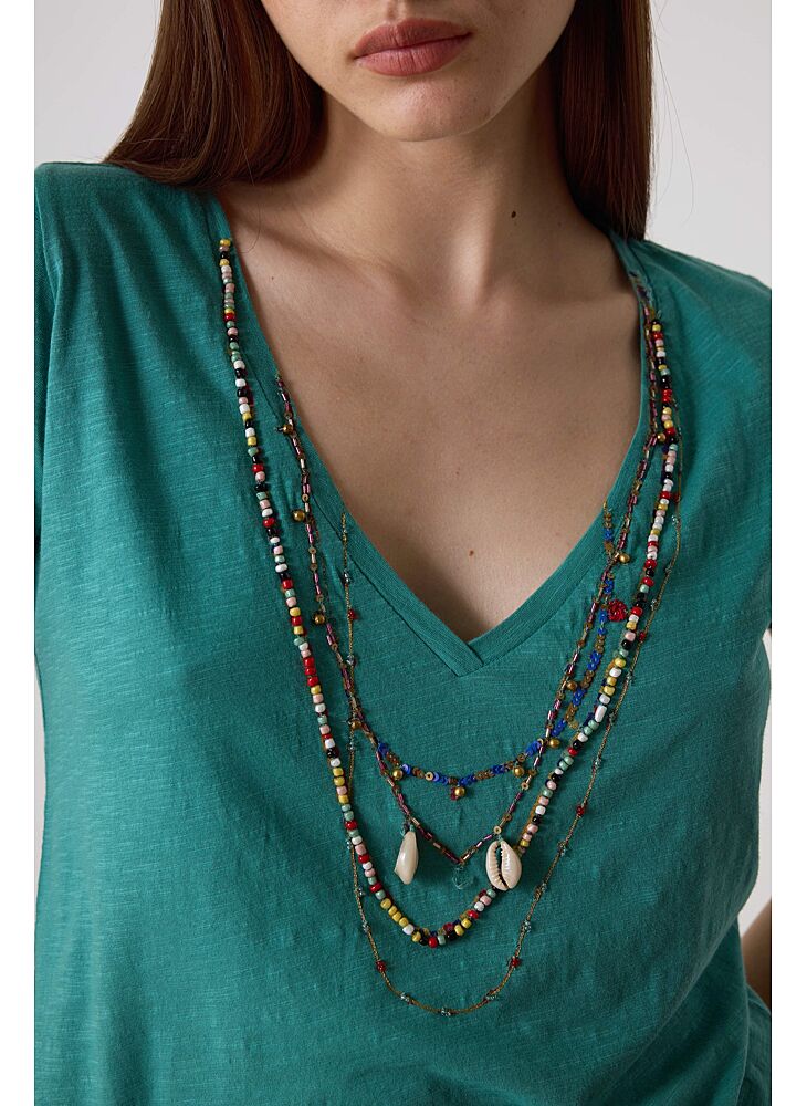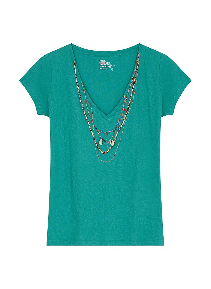 The Tonton Shell t-shirt is a summer essential with its embroidered seashells, beads and sequins. The Leon & Harper woman's wardrobe is steeped in summer.
